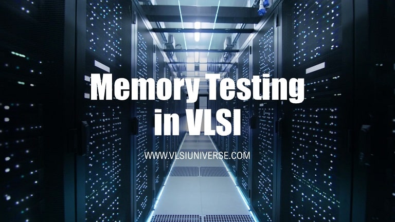 Basics of Memory Testing in VLSI Memory BIST VLSI Design by VLSI Universe - May 30, 2021July 21, 20210 Memory is a very important component in the VLSI Semiconductor industry. In VLSI Circuits’ memories play a key role in storing huge data. Memory testing in VLSI using Algorithms and Patterns efficiently is important. Built-in self test, self diagnosis, redundancy analysis and self repair. Various test algorithms which helps in testing of memories such as BIST compiler and BIST for RAM in Seconds. Memory faults and basics of checkerboard algorithm and march tests or algorithm will be discussed. Table of Contents ToggleIntroduction to Memory TestingBasics of Memory ArchitectureFault Models in the memory cell array in Memory TestingSAF – Stuck at faultSOF – Stuck open faultTF – Transient FaultsDRF – Data Retention FaultCF – Coupling faultsRDF – Read Disturb FaultsTEST ALGORITHMS or PATTERNS IN Memory TestingMarch Test NotationsMSCAN – Memory Scan Algorithm in Memory Testing{⇑(w0); ⇑(r0); ⇑(w1); ⇑(r1);}Limitations of zero-one or MSCAN algorithm.Checkerboard Algorithm or Patterns in Memory TestingBenefits of checkerboard algorithm or pattern over MSCANMarch Test – bit-oriented March C algorithm in Memory TestingBenefits of March Test AlgorithmFaults Simulator in Memory Testing – RAMSESMemory BIST Built-Inn Self Test) Model in Memory TestingConclusion to Memory Testing Introduction to Memory Testing In the current situation the world is producing large amount of data which needs to stored in the memories. So memory technology is a growing technology in the semiconductor market. Understanding and improving the memory testing in VLSI is very important because they don’t have the logic circuits or any sequential elements like flops in them. We have to have separate techniques, test strategies and methodologies for memory testing as they don’t have similar fault models and scan design techniques cannot be reused here. In short we cannot apply regular DFT techniques in the memory. Different fault models such as Stuck at fault, Stuck open fault, Transient faults, Data retention faults, Coupling faults, and Read disturb faults with their respective notations. Basics of Memory Architecture An architecture of a memory model constitutes of an array of memory cells. The array of memory cells are in the two-dimensional form. A full address is fed to memory through an address bus to row decoder and a column decoder. Row decoder decodes the address and enables the rows based on the address. Similarly, the Column decodes the address from the bus to enable associated column cell arrays. The further memory cell is connected to A sense amplifier, which senses the data stored in the memory cell array amplify it, and sends the data out. As shown in the above memory model the intended data can be written into the memory or the data to be read out from the memory. The Read or Write enable signal is passed to the special circuitry to perform the memory operations. We need to test the memory whether the correct data is being written or readout of the memory which is an important task. Basic and Typical examples of memory are 1T DRAM and 6T SRAM. Sense amplifier plays a very crucial role and amplifying the data by considering the threshold for logic 1 and logic 0. The performance of the memory is analyzed based on how many clock cycles are required to write the data into the cell and clock cycles required to read the data out of the cell. Fault Models in the memory cell array in Memory Testing One needs to understand the various fault models used in the memory testing unlike fault models in the DFT of regular combinational circuits and sequential circuits(That is fault models, in this case, are differently analyzed as memories don’t have logic gates). Before understanding the fault models we need to understand the notations 1. An up arrow ↑ denotes the rising transition during a write operation. 2. A down arrow ↓ denotes the falling transition during read operation. 3. An up/down arrow denotes either rising or falling transition. 4. Reversed A ∀ denotes any operation at the cell. 5. <S/F> denotes the operation activating the fault upon the faulty value of the memory cell. Now let us list out the fault models in the memory testing, SAF – Stuck at fault Here there can be two faults, a stuck at 1 fault and a stuck at 0 fault. The notation for these can be, for stuck at 0 its < ∀/0 > which says for any operation on the cell, the cell response is 0 only. And for stuck at 1 its < ∀/1 > which says for any operation on the cell, the cell response is 0 only. SOF – Stuck open fault A stuck open fault occurs when there is a discontinuity in a word line or a switch got permanently open. TF – Transient Faults Here there can be two faults, a rising transient fault, and a falling transient fault. The notation for these can be, for rising transient fault its < ↑/0 > which says for the rising operation of the cell, the cell response is 0 only which has to 1. And for falling transient fault its < ↓/1 > which says for falling operation of the cell, the cell response is 1 only which has to be 0. DRF – Data Retention Fault This kind of fault model arises if a cell becomes incapable to hold the data or retain the data for a specified period of time. here the memory cell loses its data spontaneously and not because of READ or WRITE operations. CF – Coupling faults There are three kinds of coupling faults 1. Clin – Inversion Coupling fault, This kind of fault occurs when one cell transition leads to an inversion of other cell content. 2. CFid – Idempotent Coupling fault, This kind of fault occurs when one cell transition leads to a constant value either 1 or 0 in other cell content. 3. CFst – State Coupling Faults, — Here the coupled cell is forced to a particular value only if the coupling cell is in this state; <0;0/1>, <1;0/1>, <0;1/0>, or <1;1/0>. RDF – Read Disturb Fau